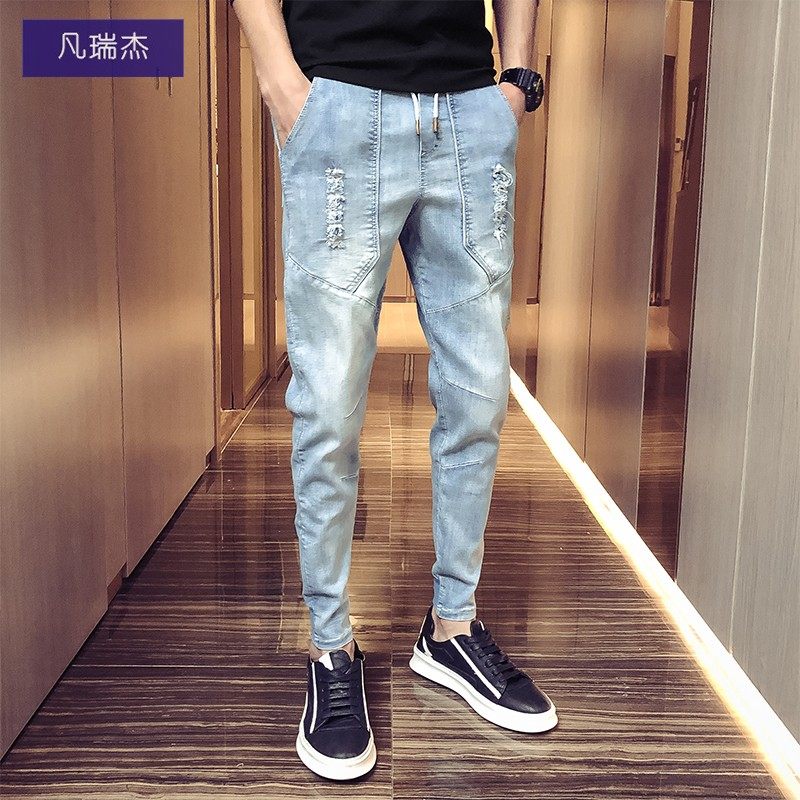 Giày da trắng có bàn chân khá to, chân không đi tất, mặc quần chín điểm (*) viền ống quần mang màu hồng lòe loẹt còn giày da đen thì đi tất đen, phong cách phối đồ tiêu chuẩn.